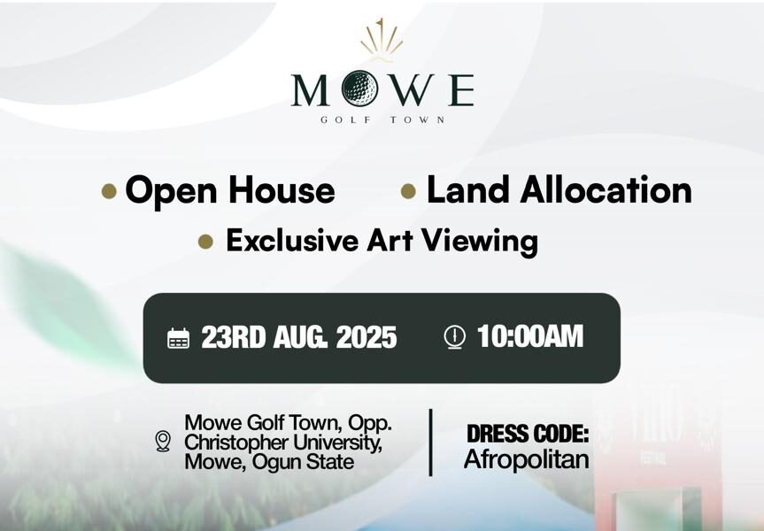 The Daycation promises to be more than an unveiling. Guests will enjoy an unforgettable blend of leisure and culture, including scooter rides, sip-and-paint sessions, and serene relaxation zones. A standout highlight of the day is a private African art exhibition worth over ₦500 million, curated by renowned collector Engr. Dayo Adetunmbi (CEO, Heavy Lifting Limited). The showcase will feature works by celebrated artists such as Bruce Onobrakpeya, David H. Dale, Abiodun Olaku, Kolade Oshinawo, and moreDeveloped by Legal City Homes & Properties in partnership with Gidi Real Estate Investment, Mowe Golf Town is designed around a nine-hole waterfront golf course and reflects a vision of sustainability, community, and cultural heritage. It is strategically located just 45 minutes from Lagos, offering a lifestyle where modern living meets nature and recreation.